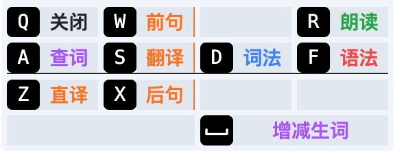 - Z 键: 直译整句。在单词所在句子上按 Z 键