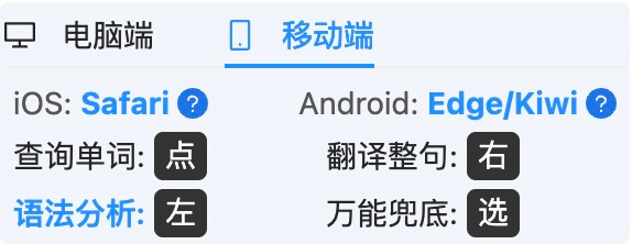 - 选: 兜底。选择文本后,自由选择查词、翻译、语法